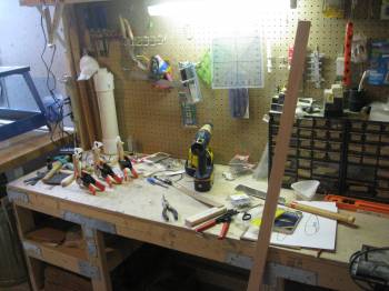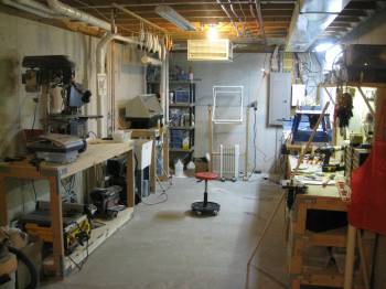 Posts: 619 Location: Verona, WI | Here's mine. No where near as clean as MS and I have a hard time keeping the kids out of there - one wants to use the drill on every piece of wood he can find and the other wants to draw flowers with sidewalk chalk on the floor. It's a 7' x 12' spot in the basement. No external venting so water based paints with a booth with any lead work done outside. Ceiling mounted dust collector to help with the dust. Shane Attachments ---------------- workshop1.jpg (28KB - 124 downloads) workshop2.jpg (28KB - 132 downloads) rotator.jpg (38KB - 137 downloads) paint stand.jpg (26KB - 140 downloads) ceilingrack.jpg (27KB - 129 downloads) | ||
