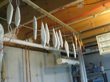 Posts: 619 Location: Verona, WI | It's been a long time since I even touched a bait so I am pretty happy to get back at it. The paint booth works great. The dryer is an interesting story. I used to have one made of wood but every once in a while I would get a tiny wood chip or sawdust in the clear coat and it would drive me crazy. So I made one out of PVC. That eliminated the occasional wood chip problem. The 2nd improvement was the motor. I had used a rotisserie motor for thie rotator for a long time but one night I had the motor give out while the rotator was loaded with baits. Woke up to a huge pile of epoxy on the floor and 8 ruined baits. So I added a heavy duty geared down motor from Fastenal and no problems after four years. Shane | ||