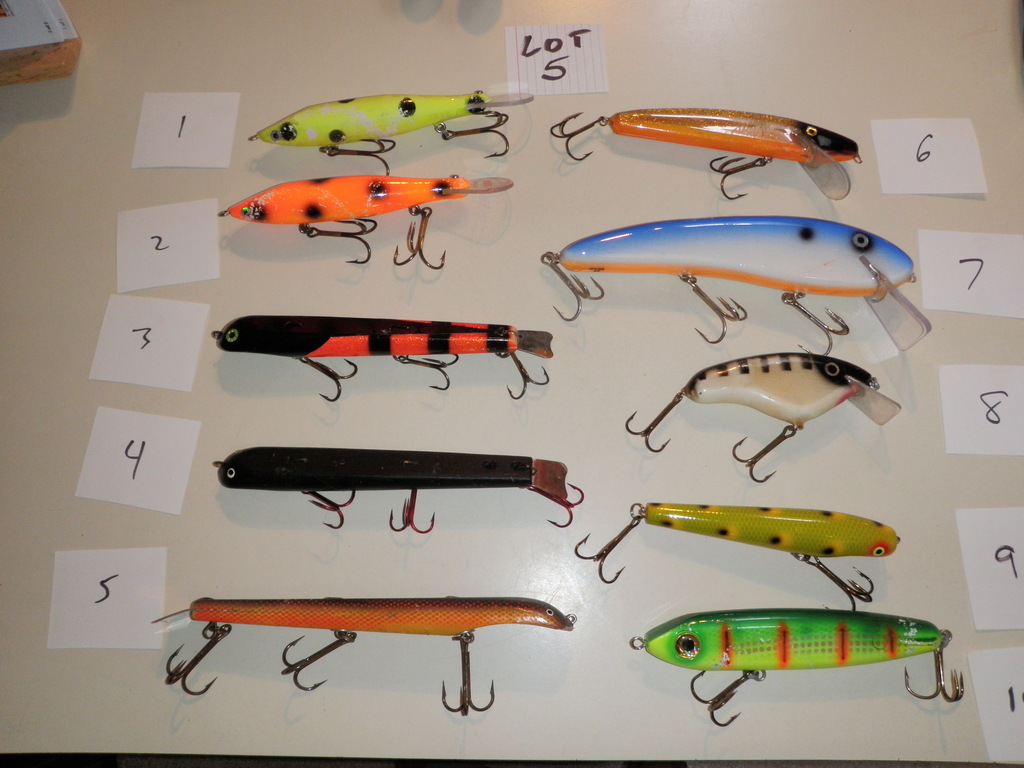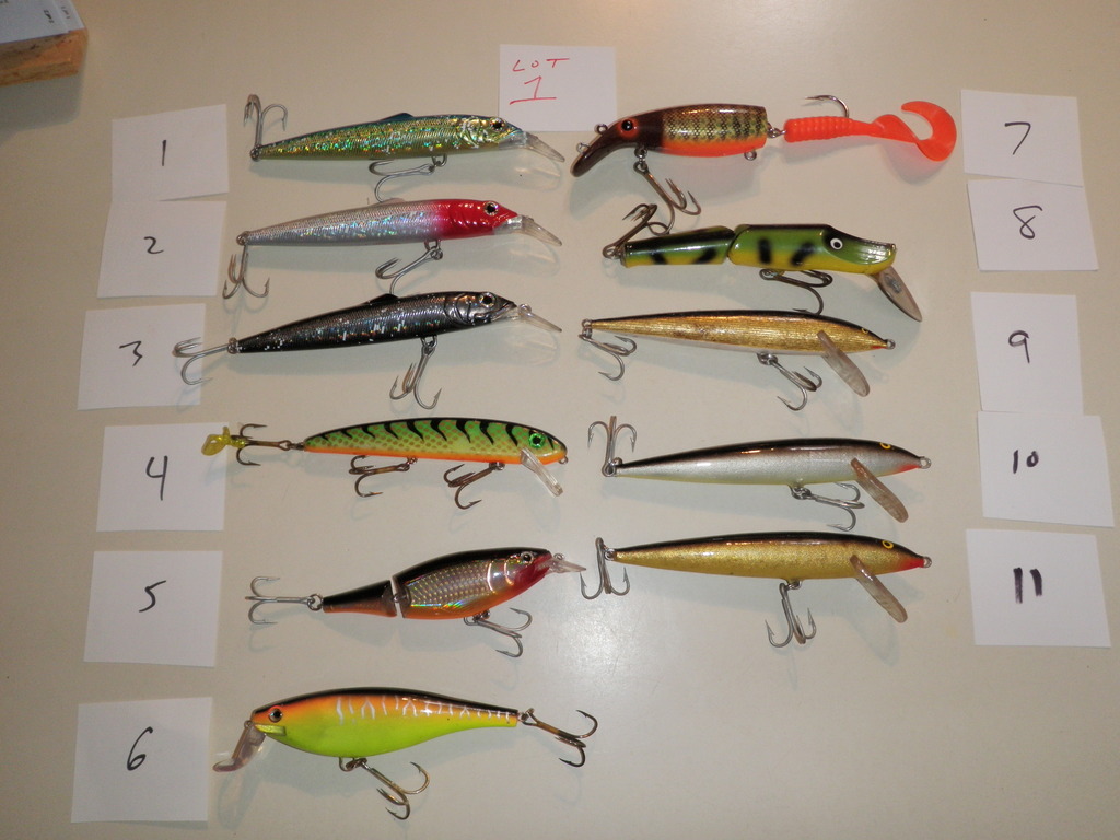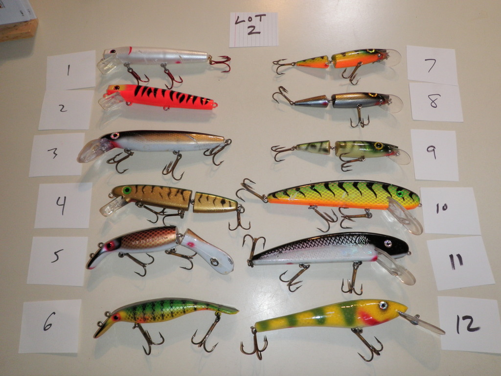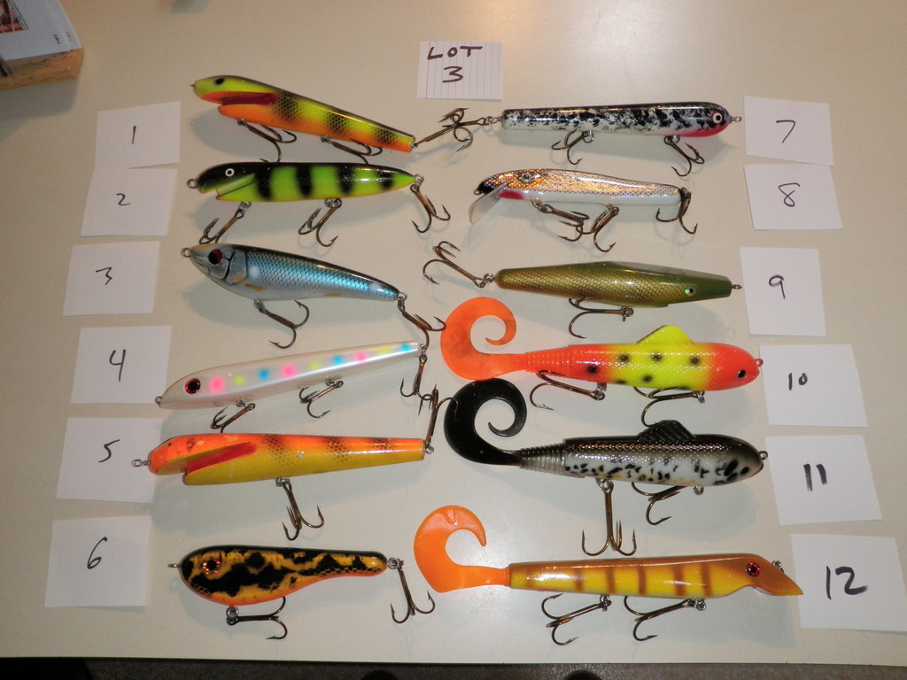 Posts: 474 | Several baits for sale I will combine shipping $5 for first and $1 for each additional Lot 1- each lure is $4 two for $7 Rapalas, Shallowraider, Jake- SOLD Believer is single hook on rear, not a factory super #4,7,9,10,11 SOLD Lot 2- each lure $8 two for $15 #3 is a countdown model, #12 is a repainted Bagley DB08 #7,8,9 SOLD Lot 3- each lure is $8 two for $15 #3, 6, 8, 12 SOLD Lot 4 each lure is $8 except #4 is $15 #6 and 7 ,8 SOLD Lot 5 Mantas $15 each 1 is not marked #2 is regular Suicks are 9" #3 is repaint, $8each #4 is weighted 10 with some nose damage can send close up pics. $10 Slammer $10 SS Smoker Shad SOLD Wiley SOLD Crane $10 Hellhound SOLD Lot 6 Salmo Jacks SOLD #3 Custom Thunderhead $8 PEDNING #4 10" Mojo Weagle $15 SOLD #5 Newmann jerkbait SOLD #6 Old school Bobbie with scale and bars added $10 any questions just ask thanks Edited by kevinj 12/16/2010 5:04 PM Attachments ---------------- lot1.jpg (168KB - 95 downloads) lot2.jpg (178KB - 96 downloads) lot3.jpg (193KB - 104 downloads) lot4.jpg (170KB - 106 downloads) lot5.jpg (186KB - 95 downloads) lot6.jpg (171KB - 100 downloads) | ||