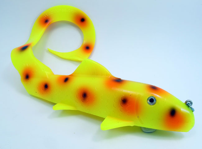 Posts: 164 | Here is a color that has a mixture of spots and bars, this is one of my all time favorites. I have a handful made for the show, but I have a few extra blank chartreuse lures that are waiting to be painted. So which chartreuse color pattern out of the two or any other ideas. As for the paint, it is specially made for soft plastic, it has taken me a few years to perfect the application so it does not come off and that’s a secret. If I had the time, I would love to try a different airbrush and learn how to do some really detailed colors, like a bluegill or sunfish As for the English accent, think of it a little more like a cockney accent. For those of you who have seen “Lock, Stock and Two Smoking Barrels” You might hear me say at the show “It’s a steal, it’s a deal, it’s sale of the F-ing century” Attachments ---------------- orange_chart_banditMF.jpg (64KB - 205 downloads) | ||