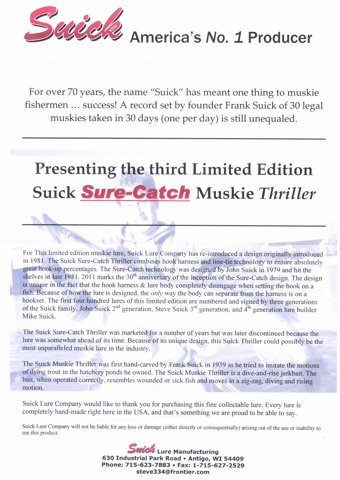 Muskie Fishing -> Lures,Tackle, and Equipment -> 2011 Limited Edition'Sure Catch' Model Signed Suick!