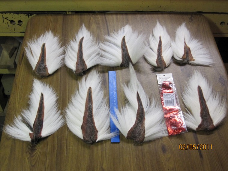 For Sale; 9 (Nice), New Large deer tails, all natural color, + Hedron red tinsel.