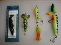 -JMac Jig, Slippery Sam, Storm "Wildeye", DeLong Eel, Smity Jerk Bait