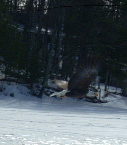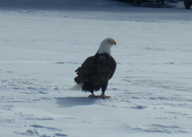 A couple Eagles kept me company outside the Frabill all day looking for a few bluegill handouts.