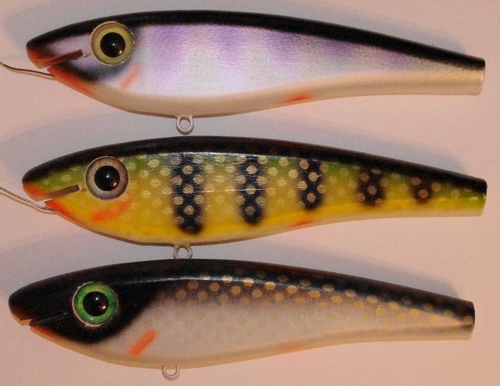 More Muskie Fishing -> Basement Baits and Custom Lure Painting -> Some new 8" cranks and 5 and 6" gliders
