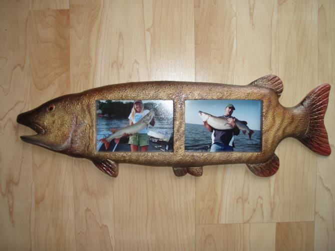 Location: Delavan, WI | Though this is something cool most of you would like- picked up the frame at hobby lobby- originally it was painted as a pike- and then I had my buddy Ben Modica aka Musky Fix put the magic touch into it & repaint it to look more like a musky, then inserted photos of mine and wife's PB's - makes for a great cabin decor or just display on the wall - and as soon as we get a bigger fish - can easily be switched out