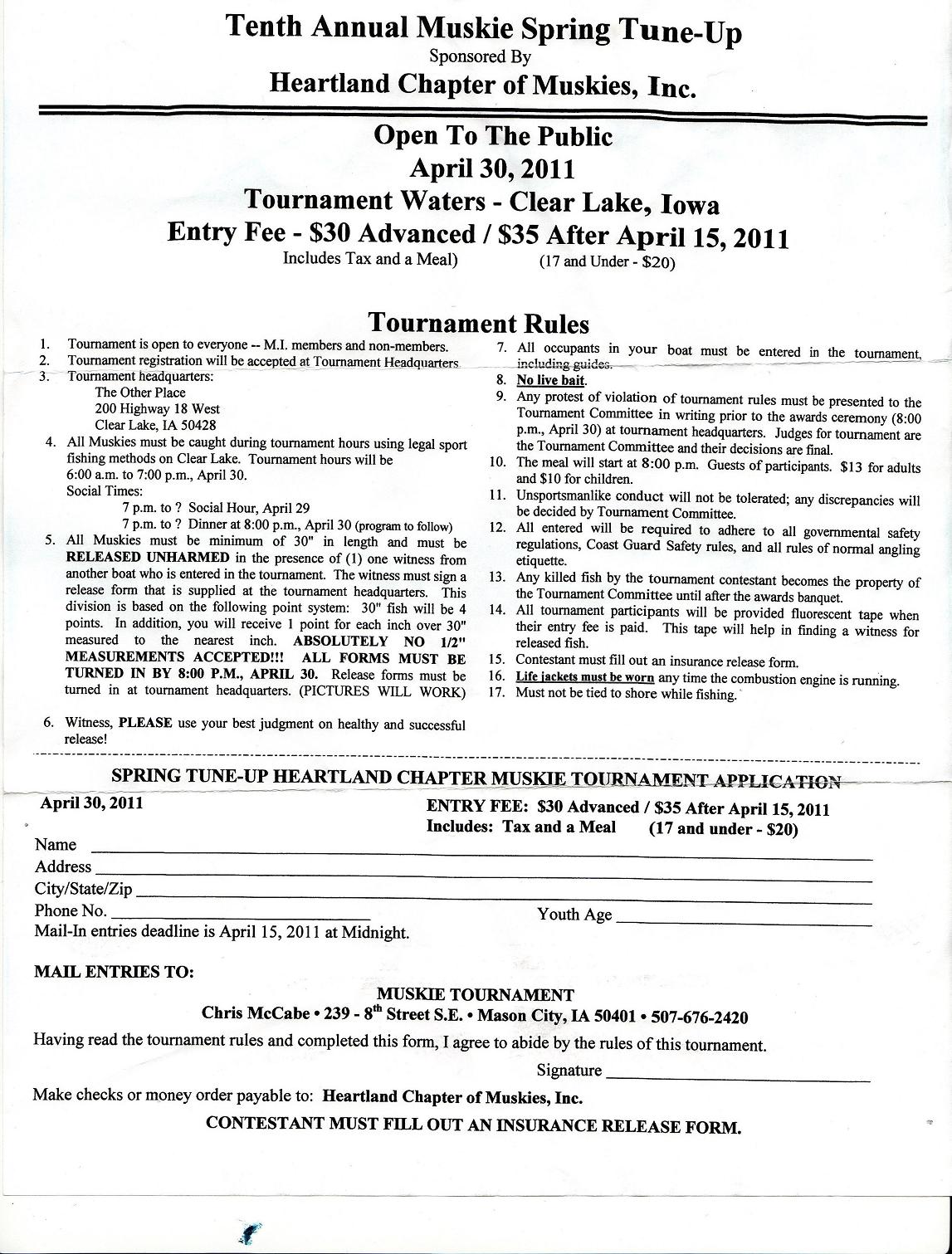 Here is the entry/rules form. Print this out and send it the bottom portion beore April 15 to pay only $30, otherwise it is $35. Its a great time.