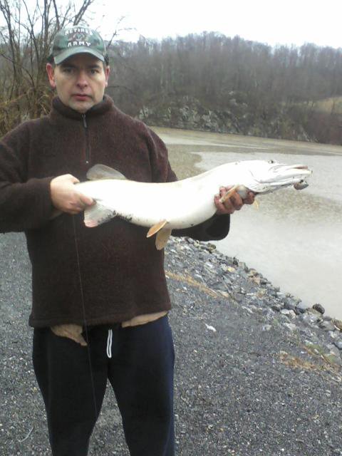 Posts: 7 | IVE WROTE THEAD OF GNR HERE IS HIS REPLY TO MY CATCH///That is what I would consider a very rare catch! Although we did see one caught this past fall here in WI, which was 51 inches! I have only seen one in my career and I have heard of one other albino musky, caught in WI in 2005. Here are some responses that I put together last fall: Albinism is a heredity condition that results in a lack of pigment, and can range from small blotches to complete lack of color, so, based on the photos, I would conclude that the fish in question is a true albino. The growth and development of an albino is typically the same as that of a normal individual. They also have the ability to reproduce offspring, which are not necessary going to be albinos. This is a very, very rare occurrence. Albino musky are rare to begin with, and for one to survive to that size is really rare, given that a fish in that condition doesn't have the protective camouflage to avoid predators (when young) or to stalk prey (when older). This fish essentially stood out in the environment from day one, but through some luck, it survived. The stained waters of Smith Mountain Lake may have contributed to this fish's survival. It is truly a two-in-a-million catch (I say "two in a million" because we saw one last fall in Northern WI). That fish was the second albino musky to surface in Wisconsin waters in recent years. In 2005, a DNR fisheries crew caught a white musky in their fyke nets during population surveys. But that fish was much smaller -- 32.7 inches long and 7.9 pounds at the time. 3. I've never heard of albino muskies showing up in any of our hatchery operations, and none of our hatchery managers have ever noticed one in any of our operations. I've attached some related files: the 2005 press release, our WDNR press release from October, and Paul Smith's article from the Milwaukee Journal-Sentinel, in which I'm quoted. If you have any other questions, let me know. Thanks, Tim WELL I GUESS TAKE IT OR LEAVE IT THATS WHAT I WAS TOLD | ||
