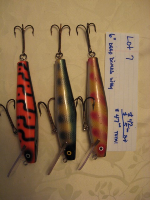 | custom painted 6" straight, jointed, and deep diver models. no splitting please. pay pal or check is fine