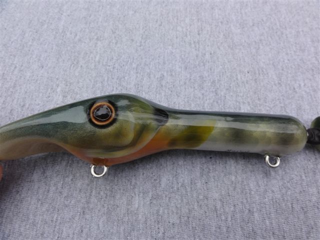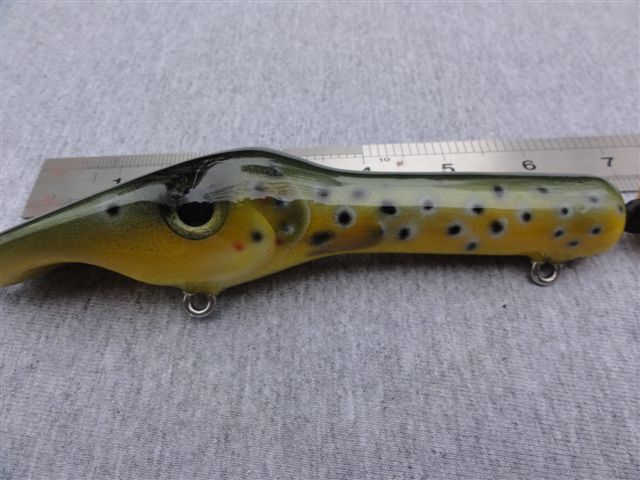 Posts: 51 | If this is the same bait that was sold at the musky shop in wisconsin rapids I've got one that looks and runs awesome. I didn't use it as much as I wanted but that will change this year. I like the dive and rise on slow pulls and the darting with sharp twitches. | ||