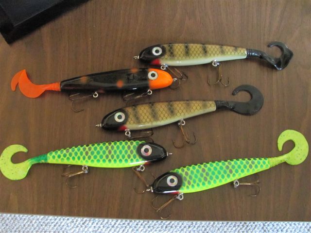 $20.00 a bait plus shipping send me a p.m. if interested they are all 7.5" soft tails the black and orange one is sold and one of the green ones is sold also a perch