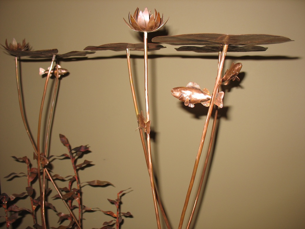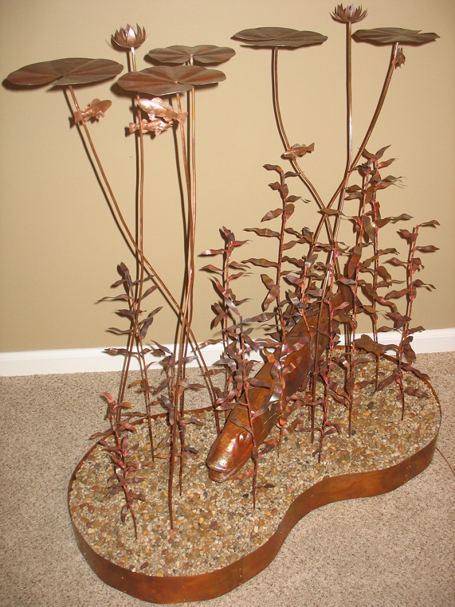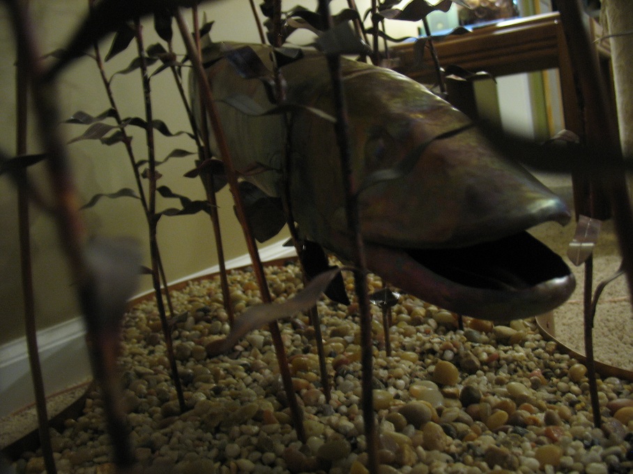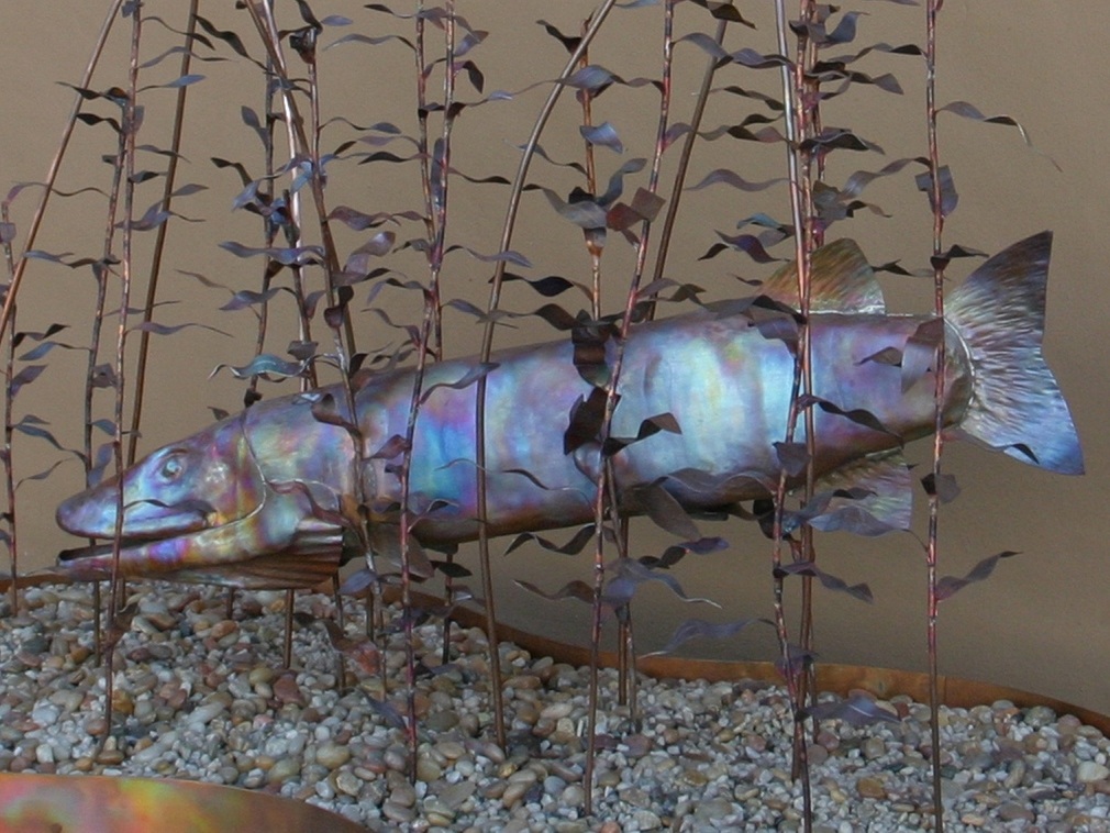 Posts: 366 | After making a copper wall sculpture of topwater muskie follow earlier this spring, I had to take the muskie inspiration a little further and do a full 3-dimensional underwater still life. It is half scale, so the base is 24"x48" and the copper muskie is 26" long. Enjoy. Ryan Attachments ---------------- sculpture1.jpg (249KB - 228 downloads) sculpture2.jpg (251KB - 185 downloads) sculpture3.jpg (177KB - 191 downloads) sculpture4.jpg (281KB - 182 downloads) sculpture5.jpg (201KB - 165 downloads) sculpture6.jpg (144KB - 183 downloads) | ||