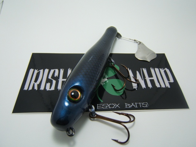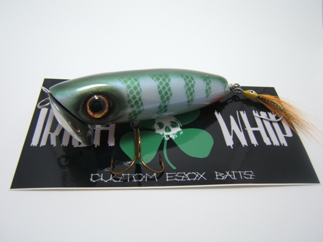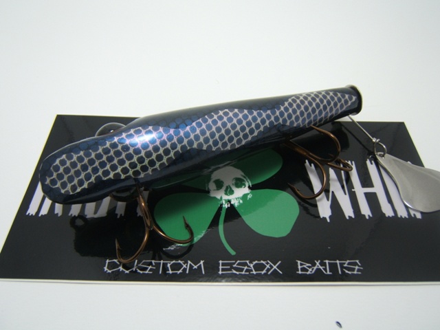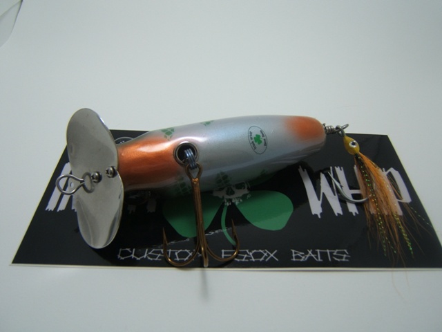 More Muskie Fishing -> Basement Baits and Custom Lure Painting -> Musky ready (Flaptails & Jitter Bugs)
