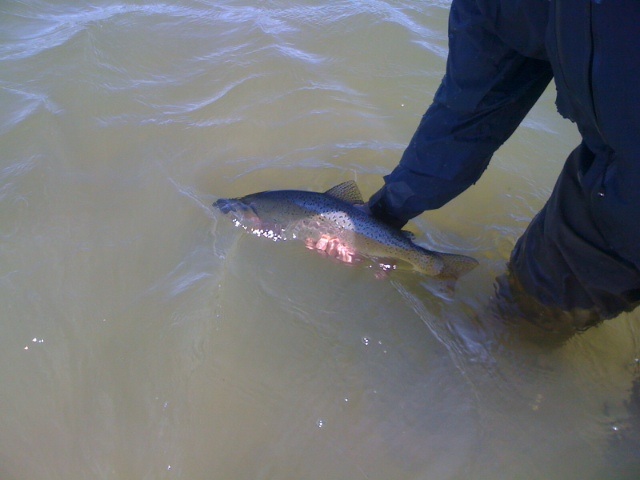 After lunch, headed out to deeper water and hooked up with a fat 38" fish. All in all, great weather and weekend to be on the water. With the warm, steady temperatures this week hopefully it will turn some fish on.
