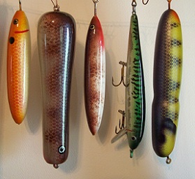 More Muskie Fishing -> Basement Baits and Custom Lure Painting -> Yesterday's Drying Rack