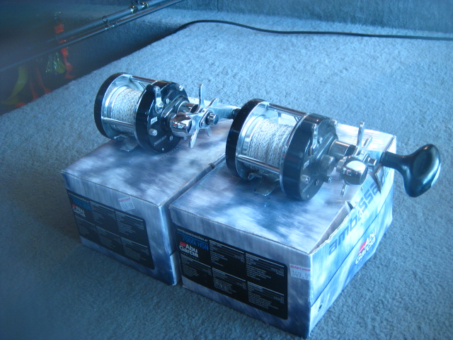 used 2 seasons, good condition. each spooled with 80lb Cortland Spectron Blackspot