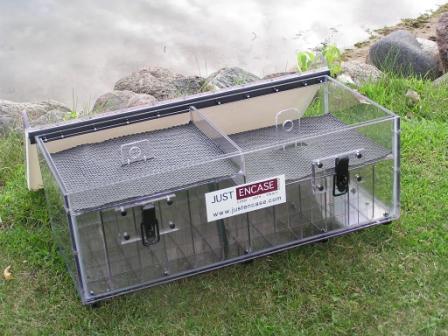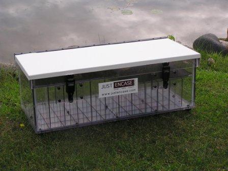 New "Tandem" set-up (F to B) due to the redesign of the interior of the Ranger 620 starting in 2011. (same dimensions for 2012) Front box can be unlatched from back box and moved for access to oversized battery storage on floor. Deck area is approx. 57"L x 33"W - with Height flush to sides and back. Holds 400 baits and counting per Customer. New stainless steel lockable flush latches, plain stainless piano hinge, and white non-slip. Now have the option of adding a "Step Box" for tools, shorter baits, etc. to aid in accessing the 16" tall Deck. Adjustable divider version of this tandem set-up is on the build schedule.