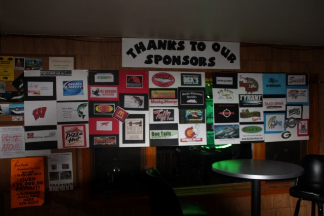 Here is a list of our great sponsors that without them we couldn't contribute this much!! THANK YOU!! Tuffy, Suick Lures, Lakewood Products, Black River Rods, Musky Hunter, Tackle Industries, Wild Musky, Mancave Baits, H2O Tackle, Tyrant Tackle, Rollie & Helen's Musky Shop, Jawbreaker Rods, Musky Menace, Sledgehammer Lures, Red October Baits, Muskie Fishermen Specialities, Granddad Lures, Phantom Lures, Mel's Trading Post, Rod Umlauf Studio, Elk River Rods, Falcon Rods, Van's Custom Lures, Milwaukee Brewers, Green Bay Packers, Dick's Sporting Goods, Wi Badgers,George Webb, McDonalds, Mole Lake Casino, WI Timber Rattlers, Milwaukee Bucks, St. Croix Rods...