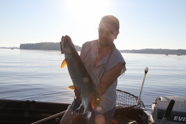 It's dead calm out here, and sunny and warm, yet the fish have been going quite well. It's anyone's game yet!