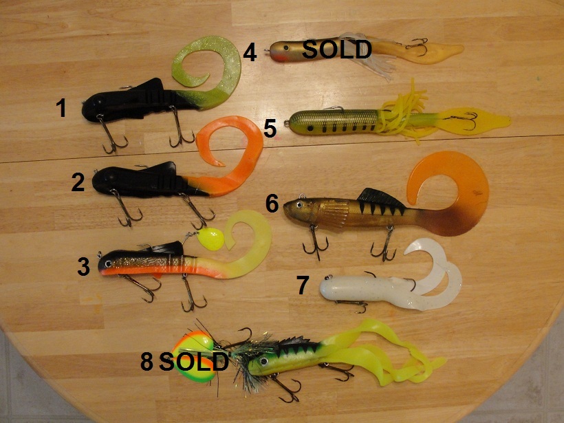 Early fall lure cleanout. Shipping costs $4 each and a $1 extra per lure up to $6, except on big rubber $1 extra for each. Cash or paypal accepted. PM if interested.