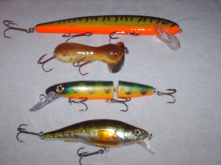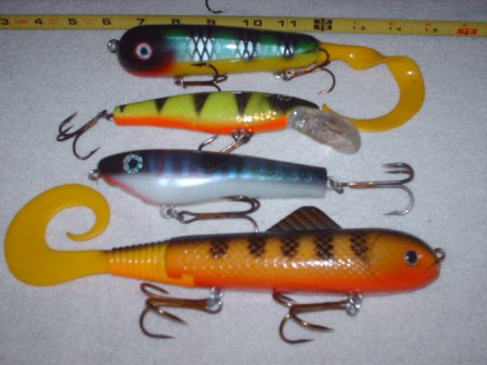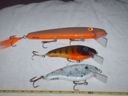 | Jump to page : 1 Now viewing page 1 [30 messages per page] Muskie Fishing -> Buy , Sell, and Trade -> bunch of baits for sale--some custom |