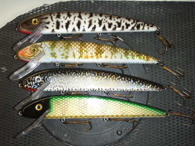 The Grandmas are all new and never fished. The perch one has a bit of "wear" from hanging in the bait box and bouncing around in the boat. $10 each or $40 shipped for the lot.