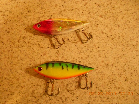 4.5" long, prism clown and firetiger. $10 shipped for both baits. Thanks. PENDING