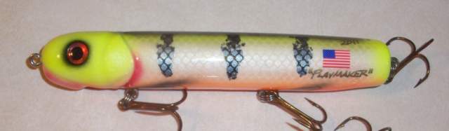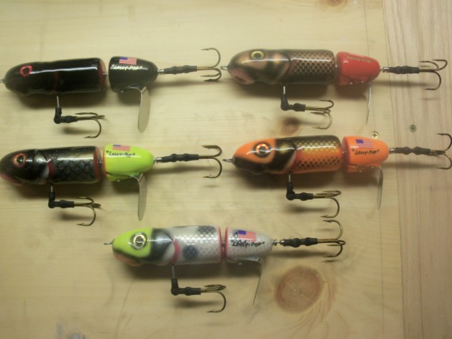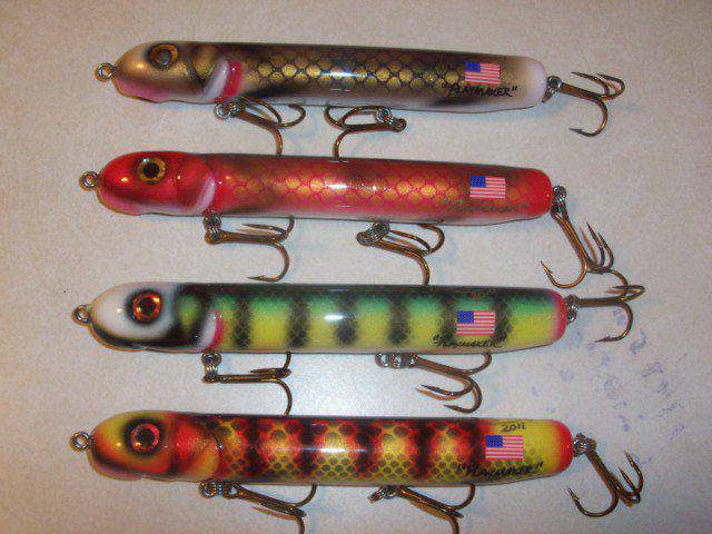 Posts: 480 | Nice body of work from the top to bottom of the water column. Looks like you are very patriotic as well. The colors and body styles look very edible too. My favs are the tail prop topwaters. Thanks for posting your fine work. | |||||||||||