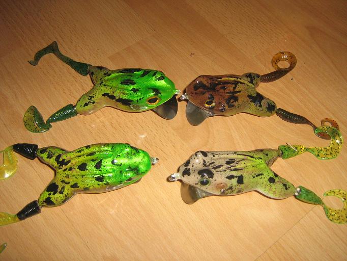 Finally had time to play around with some new frogs. Assorted floater divers buzzbaits and a creeper. Special thanks to MuskyFix for the help on the soft plastic attachmentsHope you like them as much as I do.