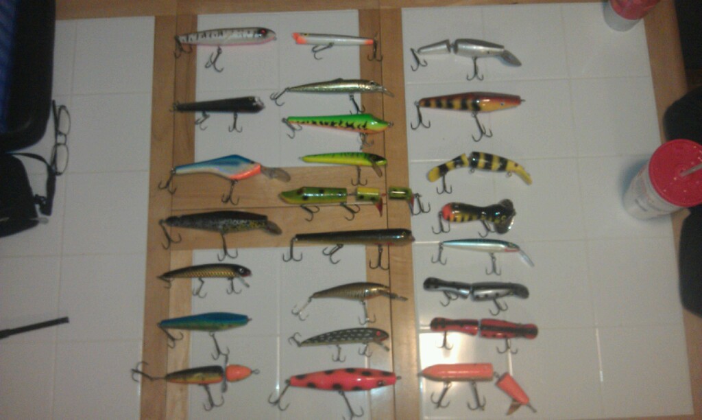 bunch of lures here don't know names of all them but they are $6.00 each and $4.00 for shipping and a a $1.00 ea. bait after