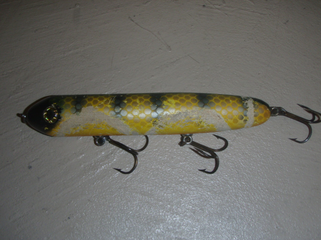 Posts: 774 Location: South East Wisconsin | Here are two photographs of favorite wounded warhorses. Top one is a Havana jack caught fish in Wisconsin. Bottom is a small original first batch Ty Sennett Pacemaker. This bait took a licking and kept ticking till a fish broke it in half last year (I lost the fish and the money part). Should of retired it but she produced when others wouldn’t. She caught fish in Canada and Wisconsin. Attachments ---------------- Hjack.jpg (107KB - 132 downloads) Pace.jpg (213KB - 139 downloads) | ||