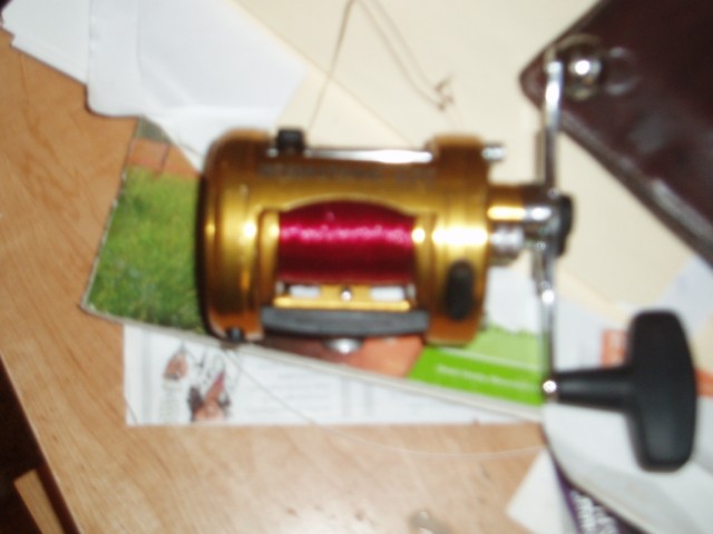 pretty good shape,some boat rash but not used much the last couple yr`s, has mono backing on it now,just needs real muskie line,has been serviced by the sportsmans repair every yr,120 shipped