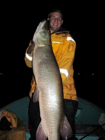 Attached is a photo for your site if you want to include it with other 2011 catches. This is a catch-and-release, 57-inch St. Lawrence River muskie. Trent Durocher of Canton, NY caught the monster while fishing with Luke Seymour. The muskie was caught in the Ogdensburg area on the evening of July 26. This fish hit a black and silver Cisco Kid being trolled in 25-feet of water.