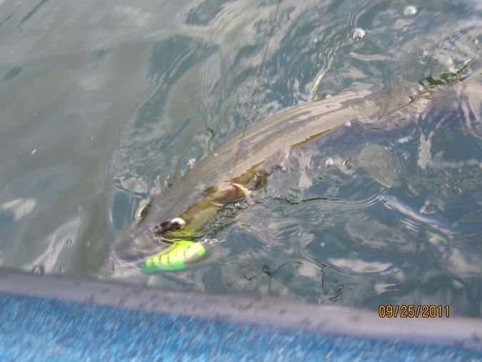 Posts: 4266 | I echo the small crankbaits. I use lots of Mike Kings lures in 5". Every fish in the lake will eat them...including muskies. You can learn alot about a lake by throwing a crankbait that dives 10'. The only other lure that beats them all for learning a lake is a jig/Creature combo. I fish them on 3/8 weedless heads and have found some of my favorite spots by doing so. | ||