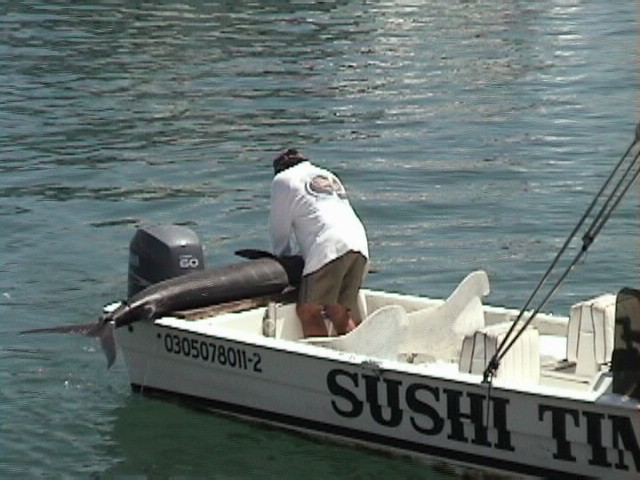 My wife and I managed 3 Striped Marlin one morning in Cabo San Lucas, Mexico in 2005. The largest was 9ft., 150lbs., all on very light tackle, and live bait. Took 45 mins. to land this one....out of a very small boat.