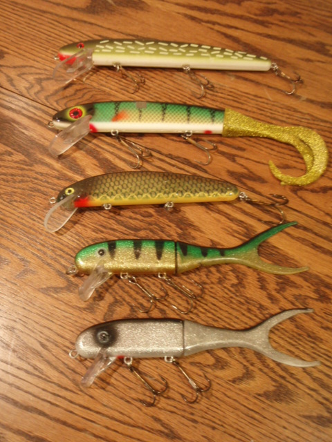 All in excellent condition. Stated if new. Some may have some hook rash from swinging in the bait box. Only bait that has a fish on it is the monster Medussa. Some are missing hooks for ease of hanging on the rack. I can add hooks if wanted.