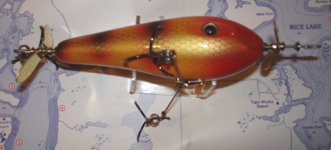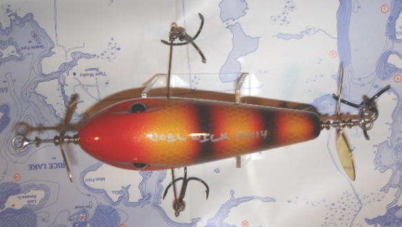 Location: nationwide | My son, Terrin, has been selected to play in the 2012 Wisconsin Football Coaches Association All-Star Charity Football Game benefiting Children’s Hospital of Wisconsin held on J.J. Keller Field at Titan Stadium on the campus of the University of Wisconsin – Oshkosh. Below are pictures of a Joel Wick Topper topwater lure up for auction. 100% of the proceeds will go toward a donation to the Children’s Hospital of Wisconsin in my son’s name. Deadline for bidding is 12 noon on Monday March 26th at which time I will notify the winning bidder.