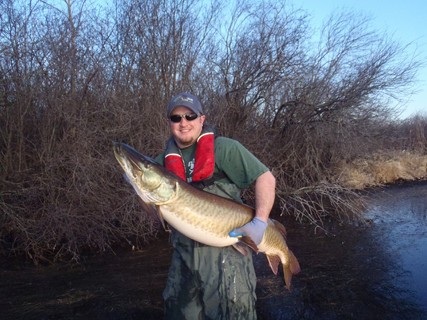 A few DNR biologists stopped by today after checking fyke nets. Here are a couple of the biggest they got, a 47" and a 51".