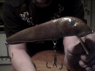 Posts: 152 | 1. 8" count down sucker twitch bait 2. 10" suspending twitch sucker 3. 8" floating twitch sucker 4. 12" floating sucker 5. 7" crappie twitch (no e tex at this point) 6. my prehistoric poppers are the size of grapefruits! 7. chimes double 8 8. 130s in my midnight color 9. #9 chimes well here are some of what i make . ive been making lures for a while now but im taking it up a notch with these balsa wood stuff. Ive got the action of these baits tuned in . i make several lures that i didnt have with me carp, blue gill , walleye as well as traditional sty;es of twitch baits from 6" up to 12" all lips are made from aluminum or soild brass depending on type. please tell me what you think | ||