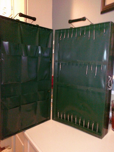 Location: West Bend, WI | I used to have one. I bought it at a rummage sale. It was full of lures. I eventually sold it on ebay. It was ok but I like hanging boxes much more. Yours looks to be in a bit better shape. |