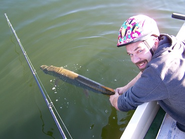 Posts: 723 | ok, here is the result from Nate Daus vs. Dave Kierstead this was from August 25th, Nate caught a 41.5 with a swim noodle for an item. Also I had matched against JoMusky on the same day out of the same boat with Nate. Since we can't fish a double match, we had to fish 2 solo matches. well, I took the fall on this one and lost to Joe. But thats ok.... there was methods to my madness Anyway, Joe's partner Will caught a 39 for his match on Saturday with a brandy bottle as his item, and then also caught a 36" tiger for Joe's match against Bill Ahrens on Sunday, in which the old Orange life jacket around his neck was the item. I will post the pic of the tiger when Joe finally gets around to emailing me it! And last but not least, Sonnet solitifies her championship spot from a match this last weekend against Mark Steinbach, Craig caught a dandy 46", pair of shoes around the neck was Sonnets item. And unless I am missing a pic from someone, that concludes our regular season for Matching. Good job everyone on fishing your matches, I think we did better this year than the last 2 combined. Attachments ---------------- nate 41.5.jpg (56KB - 134 downloads) Wills 39 for Joe.jpg (31KB - 126 downloads) Craig 46 for Sonnet.jpg (88KB - 139 downloads) | ||