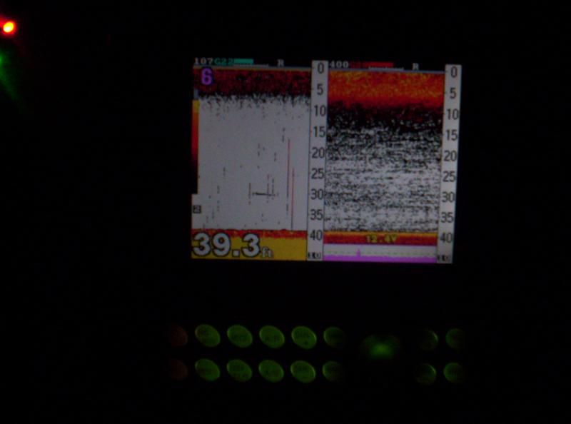 Posts: 1906 Location: Oconto Falls, WI | Better late than never, nut here is the "rise" pic I mentioned in my last post. Thought I had a better picture of the rise itself, but here is a picture of the rise that is complete and later into the night. Just imagine the 10' thick cloud at the surface coming up through the water column. Looks a lot like a huge school of baitfish, but is really phytoplankton. This area was good the entire week (day and night), and coincidently had the thickest phytoplankton at night. Note the difference in the two sides of the graph, and that is due to using duel transducers with different frequencies. I also turned the gain down on the one so as to see what was there other than the phytoplankton. On the right side I left the gain up to know where the concentrations of plankton were. Edited by CiscoKid 8/1/2012 9:48 PM Attachments ---------------- Bottom Rising (Medium).jpg (29KB - 280 downloads) | ||
