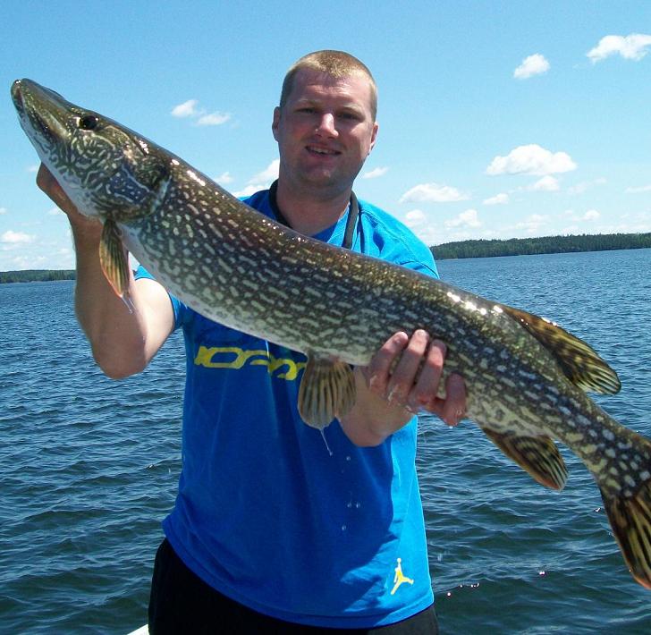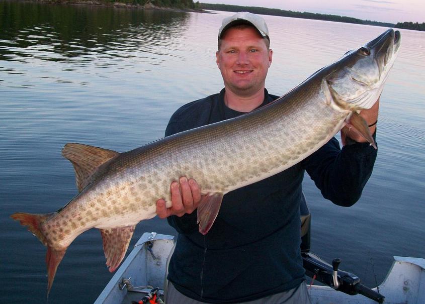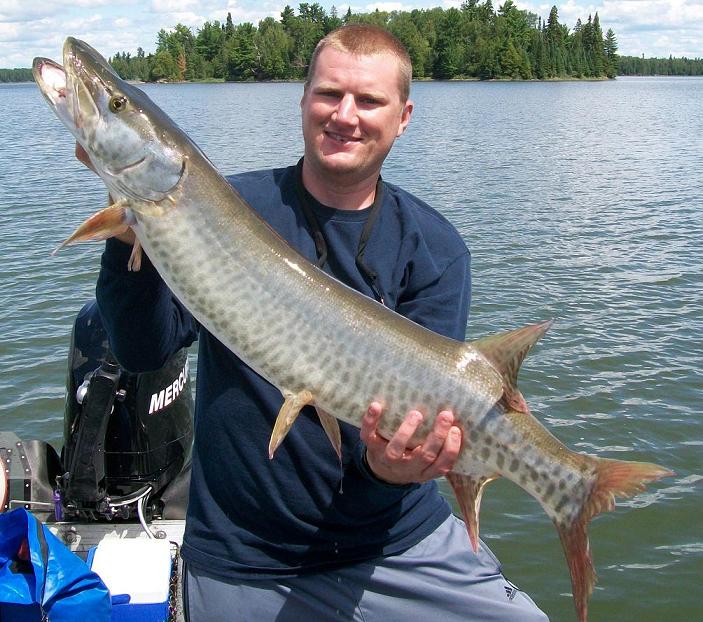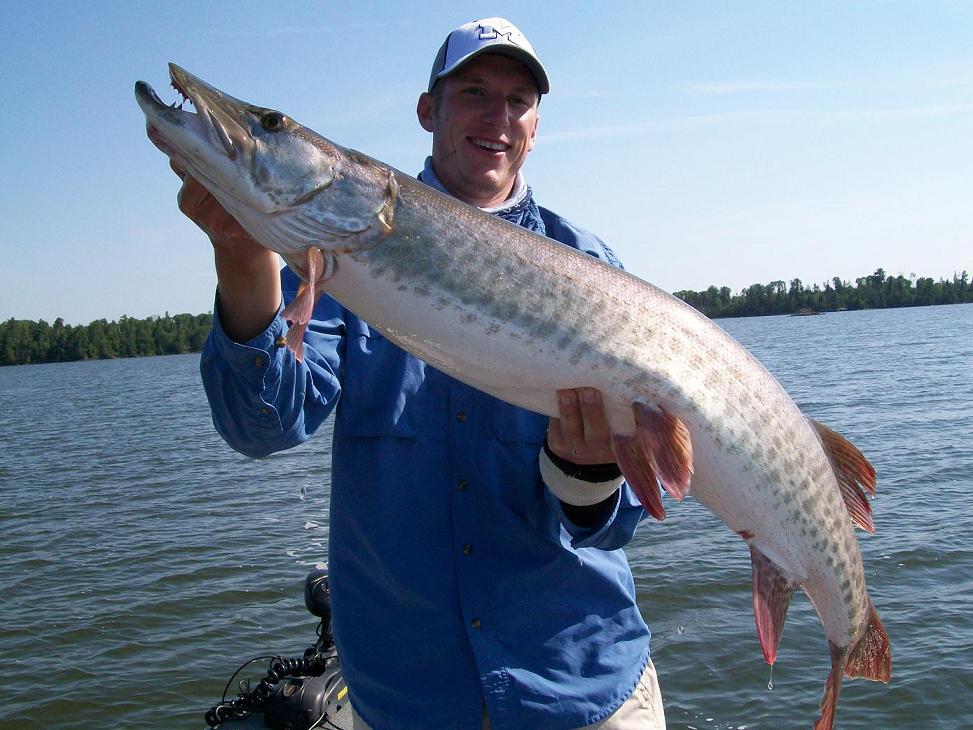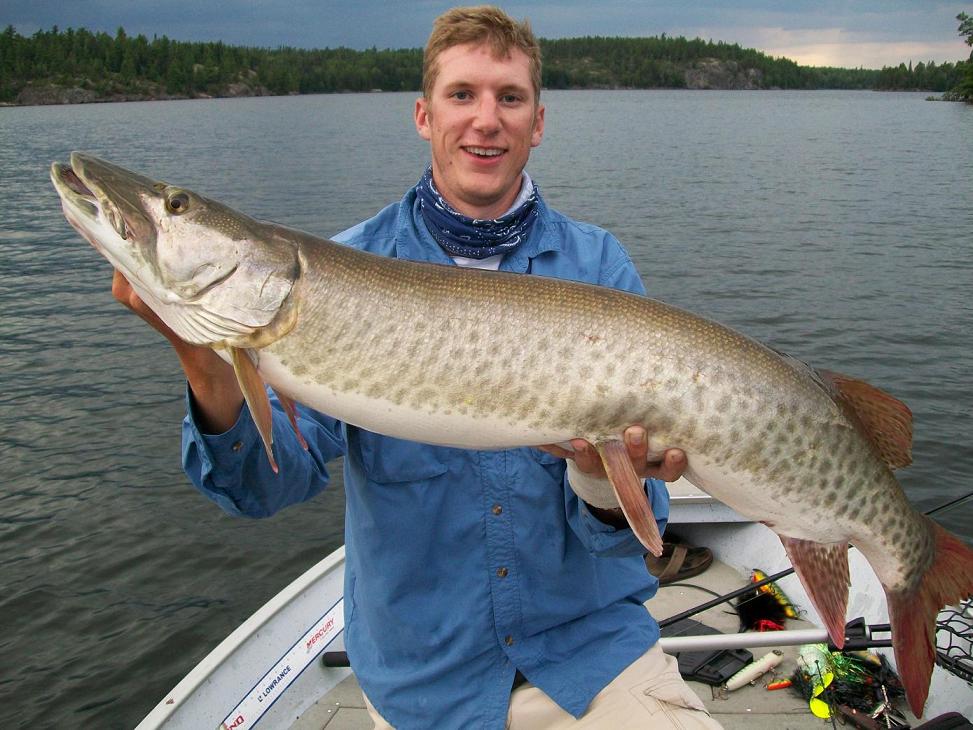 Location: Michigan | Just got back from my weekly stay up at AML and what an amazing time it was! Water temps started the week around 75 and worked up to 80 degrees. We moved fish in both weeds and rocks; fish were mostly in weeds around Vermillion bay but were mostly on rocks out east. Also moved a good amount of fish in weeds around the stanton bay area. Double tens, double eights, and walk the dog topwaters were best producing baits, but had action on suicks, dawgs, and cranks. Just wanted to give a huge shout out to Herbie, Scott, Mike, Travis, and all the other guides and dock-boys up there. They continue to be amazing hosts and will definitely go out of their way to make your trip better and put u on fish. We didn't land any monsters, but a lot of fish in the 42-46" range. Lost a couple real good fish in the 48-51 range and saw a true monster around 55". Here are a couple pics from the trip.