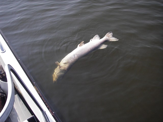 Posts: 906 Location: Warroad, Mn | Justin: Great tips. The warm water of last week has taken its toll. I don't expect folks to quit fishing, but please be a carefull as possible. Here's one we found yesterday, (42-43"er) no doubt the result of last weeks 80 degree water temps. Doug Johnson Edited by dougj 7/18/2012 12:10 PM Attachments ---------------- IMGP0081 (Copy).JPG (54KB - 164 downloads) | ||