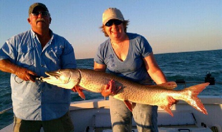 Location: So. Illinois | I just had to share this story. My chapter of Muskies Inc (28) sent a group to Lake St. Clair this weekend for a two day charter trip for Muskie. I could not attend, so I sent my wife up and paid for an extra seat for my sister Susan who was in desparate need of a vacation. Susan has struggeled over the last couple of years to keep her family together (nuff said) and has overcome countless personal hardships over the years-- I am very proud of her. My only wish was that she could catch a nice muskie. Well my prayers were answered -- she caught a 53" trophy her first day out, then followed it up with a 46 and a 40. I can't tell you how thrilled I am. Its only through great people that we have met through sites like Muskies First and the Muskies Inc organizations that allow us to participate in this great sport. Thanks to all.