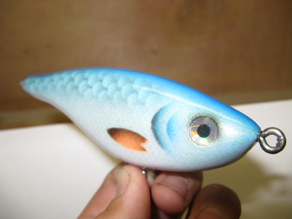 More Muskie Fishing -> Basement Baits and Custom Lure Painting -> fine scale night shiner, king shad, fine scale smallie