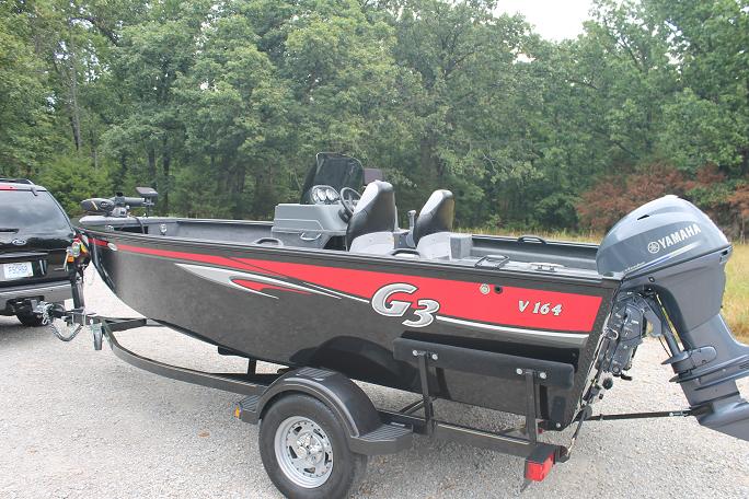 Picked the boat/trailer up last week from the factory and had the shrink wrap off that day.Gotta say for a 16'4" and 88" beam this has a ton of room and storage even with the console.Mounted my 40hp the same night I brought it home and spent a day doing depthfinders,trolling motor,charger,batteries,and a few other things.Need another day or so to finish it up,put some wax on it and then go prop it out.This is a new model for G3 this year and was produced in 2011 with a full windshield.Will also have a tiller model and is in production now. Pretty pumped...and may have to take it north for its first outing since we cant get a day below 100* down here.