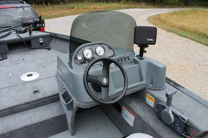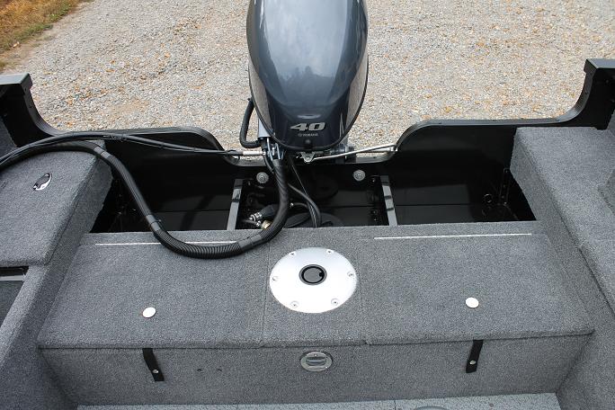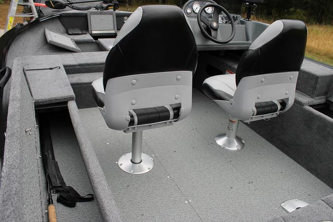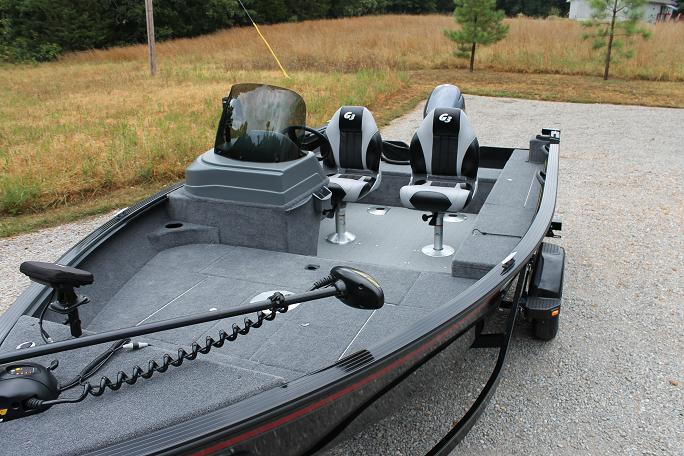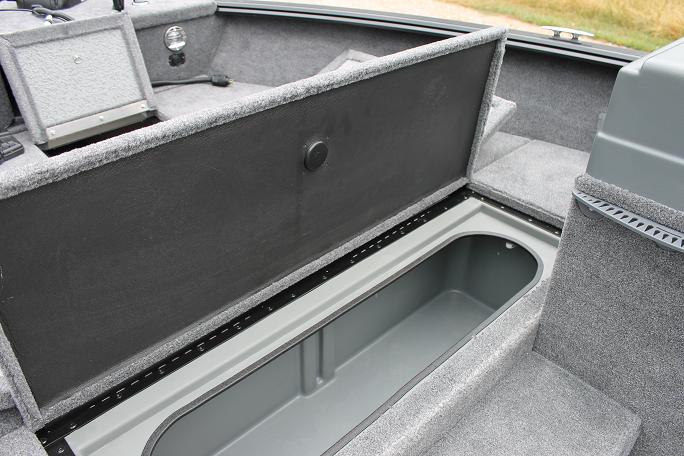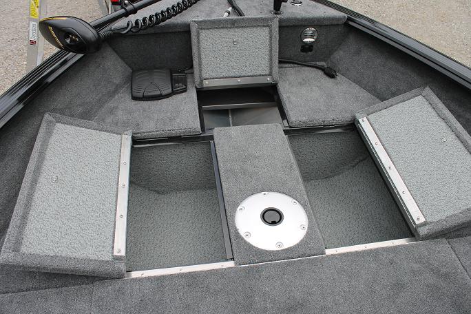 For you storage space goo-roo's..the compartment under the front pedastal base with the two doors that open left and right,I can get 18 Plano 3730's and 2 3700's in there with latches facing up.The little storage compartment just in front of the pedastal base on the floor I can get my throw and 4 lifejackets in there,plus there is still storage under the trolling motor,some in the back deck compartments with the batteries and then another 7ft storage on the drivers side under the throttle control.Though the rod box(left side) is only 7 ft long,with telescopic rods,you can fit 5-7 musky reels/rods in there no problem. Back out to test with 12 pitch Tuesday morning.