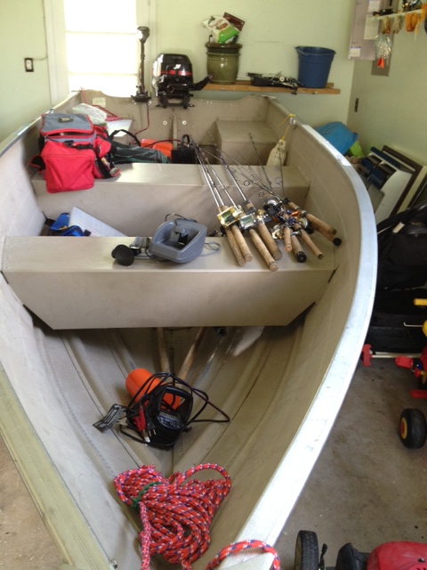 | As for the floor, find large pieces of cardboard and use that to make templates. Lay the templates out on the ply wood, cut it out. Fabricate some stringers to brace the floor against the hull. Attach the stringers to the plywood, and drop it into the boat. I wouldn't attempt to attach it to the hull. Messing with rivets and drilling holes in your hull is a good way to wreck a good boat. Also if you come across the weight problem, you will always be able to just pull the floor out with no damage to the boat. Just my $.02 | |||
