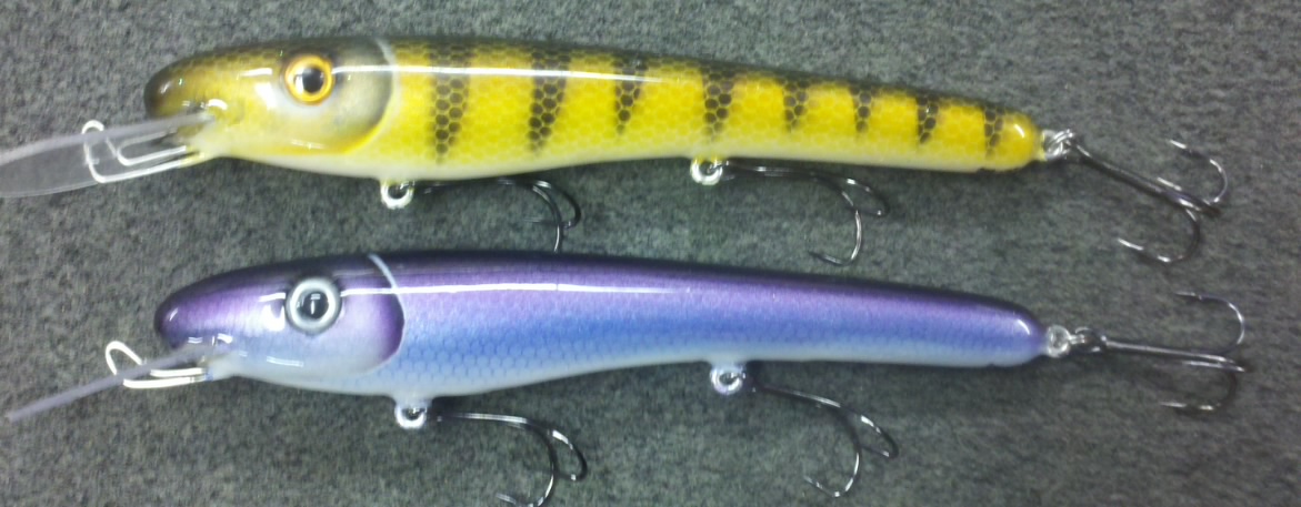 Location: musky waters , WI | Pick up these crankbaits from Jared Meisterics. He hand makes all of his baits. They have some great action. His paint jobs have incredible detail. 10" model can get to 18' in shallow lip and there is a deep lip for 20' plus. 9" gets to 10' and 7" should be close to same.